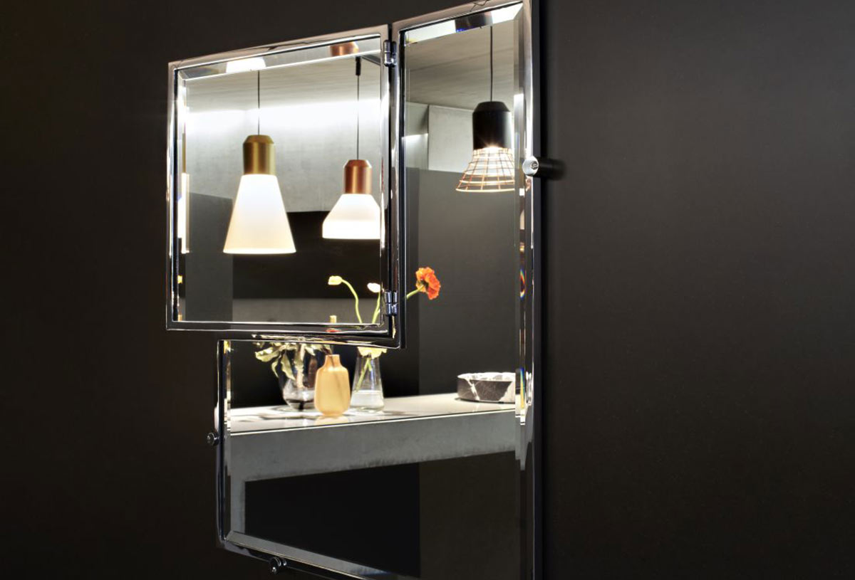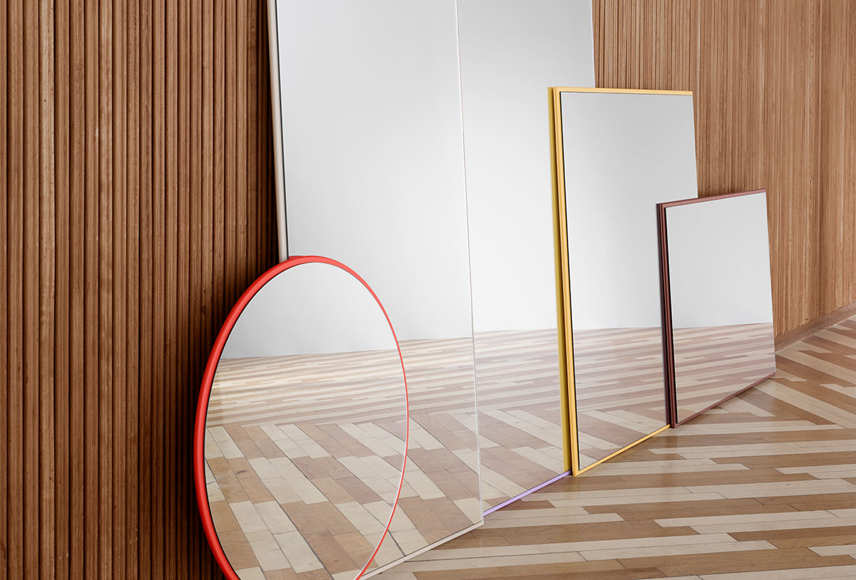 Piega von Victoria Wilmotte für ClassiCon ist Spiegel und Wandobjekt, das sich horizontal wie vertikal hängen und sehen lässt.