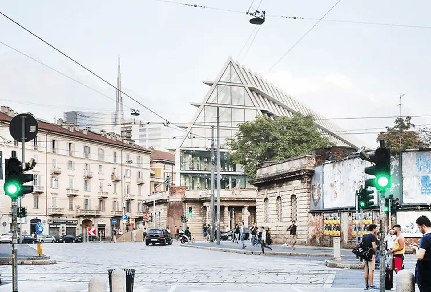 Als 'laizistische Kathedrale' bezeichnete Jacques Herzog das spitz zulaufende Glashaus der Fondazione Feltrinelli, das Bücher, Veranstaltungen und Forschungsinitiativen beherbergt und Ende 2016 in Nähe der Porta Garibaldi eröffnet wurde. Das nackte Skelett der architektonischen Struktur fällt mit der Fassade und der Strukturierung des Raumes in eins. Herzog nimmt damit Bezug auf Mailänder Bauwerke der Gotik oder Neogotik, wie den Dom und das Hochhaus Torre Velasca, das seinerseits mit dem Torre del Filarete des Castello Sforzesco korrespondiert. Mit der Form des Baus antwortet Herzog auch auf die sich linear ausbreitende Struktur der Stadt, die Spannung zwischen ihrer bäuerlichen und industriellen Prägung und auf das für Mailand typische Nebeneinander von Mittelalter und Moderne.
