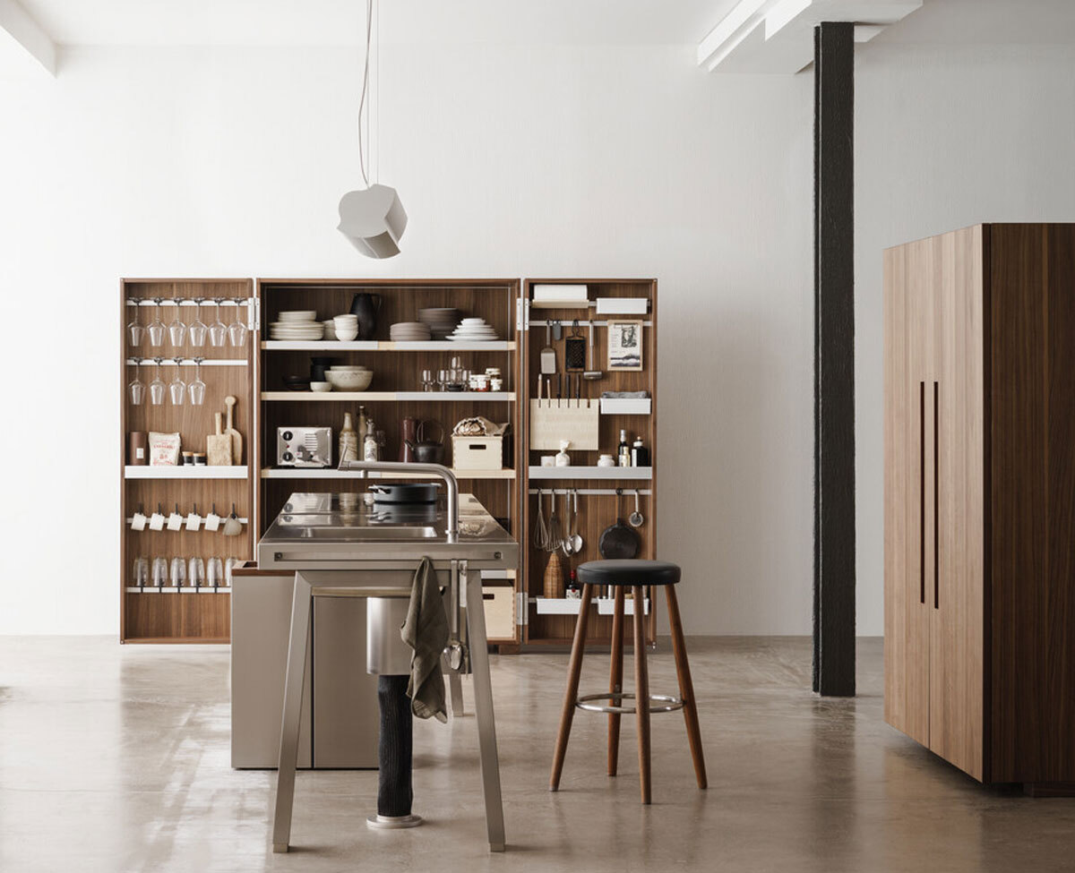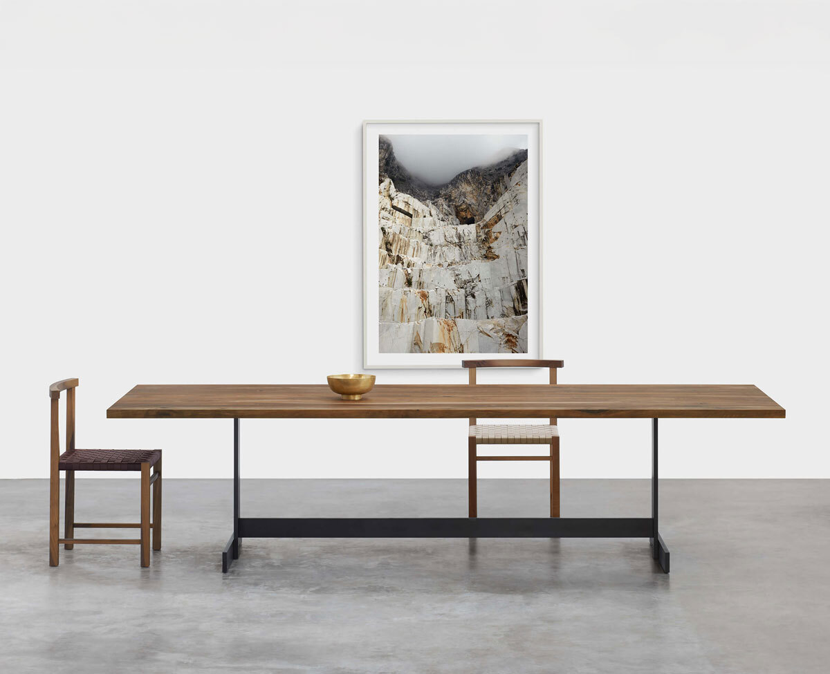 Da gerade europäischer Nussbaum nicht in großen Mengen oder großen Stämmen vorhanden ist, erfordert das Material einen sorgfältigen Umgang mit möglichst wenig Verschnitt. Das Ergebnis sind filigrane Massivholzstrukturen oder intelligent eingesetzte Echtholzfurniere, die ganz im Sinne des nachhaltigen Anbaus und der regionalen Nutzung von Ressourcen die Basis für Schränke, Stühle oder elegante Sideboards bilden.