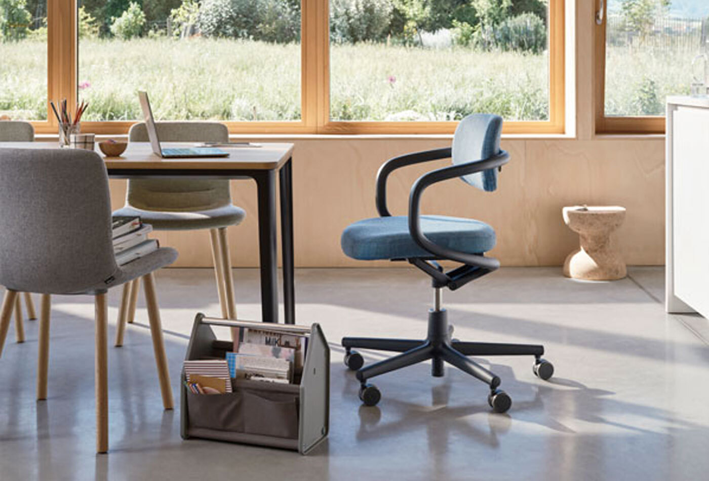 Der Stuhl Allstar entzieht sich gängigen Kategorisierungen: Ist er ein Stuhl fürs Büro oder fürs Home Office? Aus welcher Zeit stammt er? Verfügt er über Funktionen? Woraus besteht er?