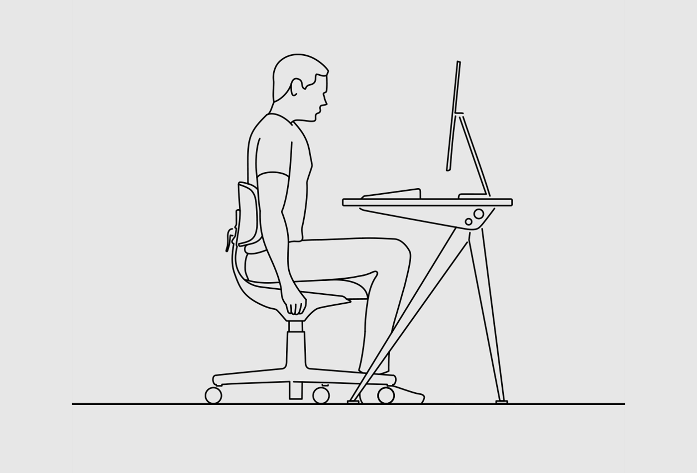 Für eine aktive Körperhaltung verfügen viele Bürostühle über nach vorne kippbare Sitzflächen. Das erleichtert die Beckenkippung und entlastet die Wirbelsäule. Zur Entspannung der Nacken- und Schultermuskulatur ist eine Kopfstütze sinnvoll, die Ihren Kopf hält, wenn Sie sich zurücklehnen. Beim Licht empfehlen wir zwischen 400 und 600 Lux Beleuchtungsstärke.